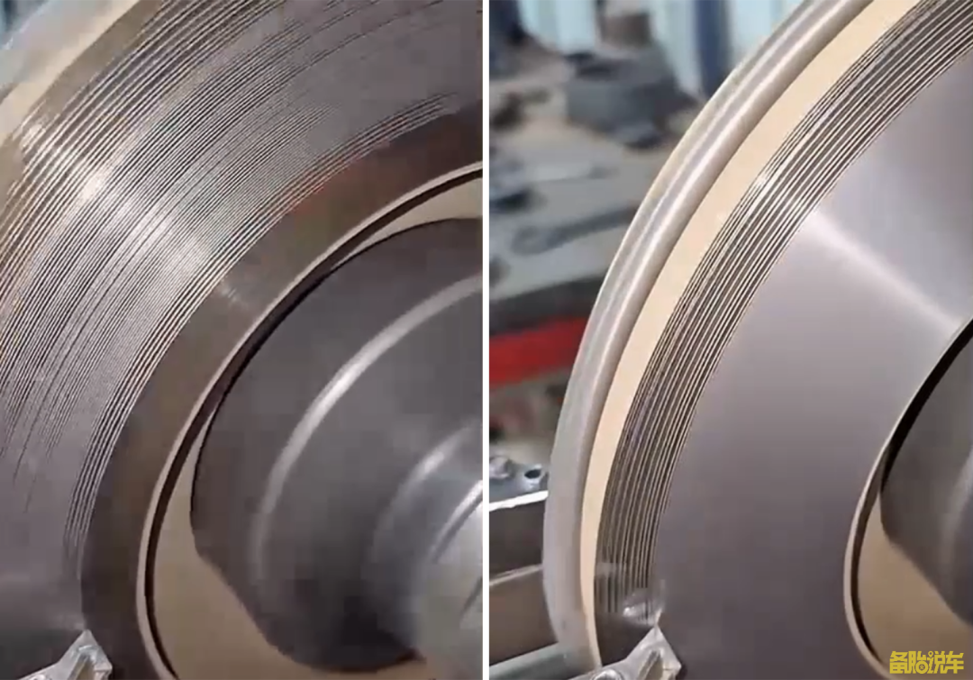第2种情况,就是刹车盘表面有凹槽,刹车的时候可能还会有异响。