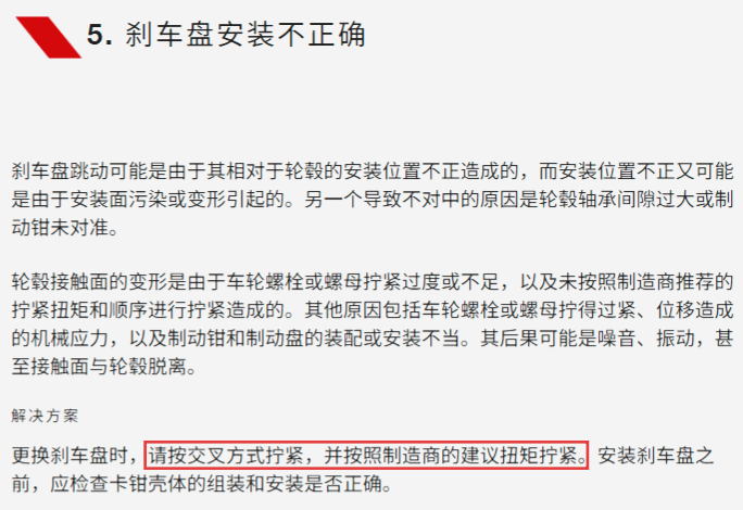 要注意,这个螺丝是需要打扭矩的,否则也可能导致刹车抖动,拧得太紧,下次换的时候很难拆下来。