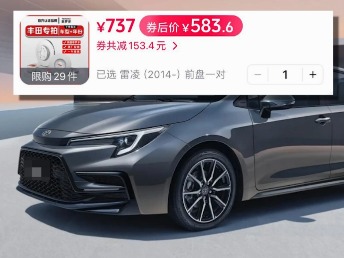比如丰田雷凌的前刹车盘,600块不到,汉兰达的前盘,就要1000多块了。